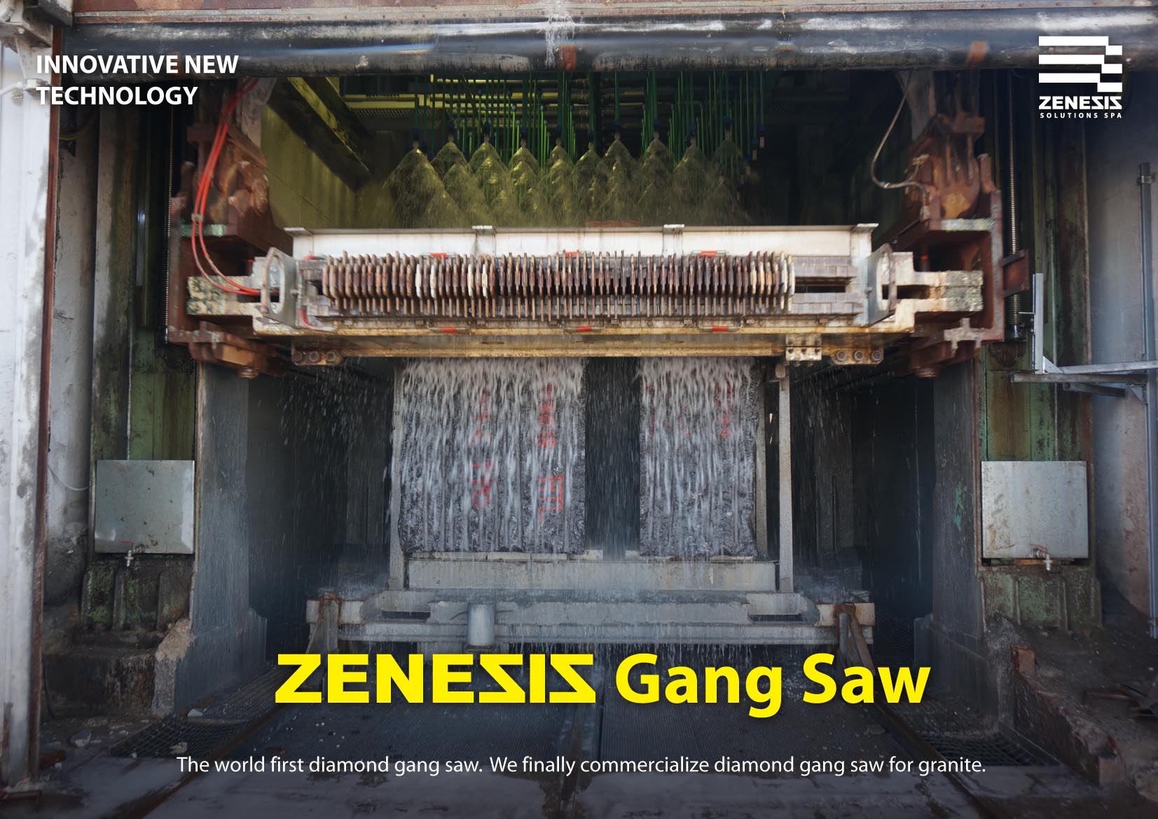 ZENESIS Solutions offers the ultimate solution for producing stone slabs using gang saw blades and using traditional gang saw machine(Steel shot) with simple modifications. BM-ZENESIS machine works well which has good life of machine and less cost of maintenance.